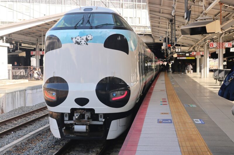 現在主力として活躍する287系は無機質なエクステリアに好みが分かれるが、その中で異彩を放つ存在がパンダくろしお。人気のデザインとしてすっかり定着している。