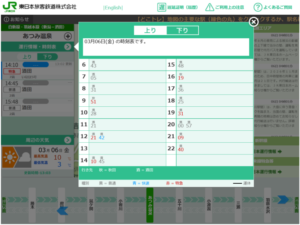 この時刻表の素晴らしいところは、臨時列車を含めた「その日の時刻表」が表示されることですね!(特急・快速などの種別は欄外に凡例表示。)
