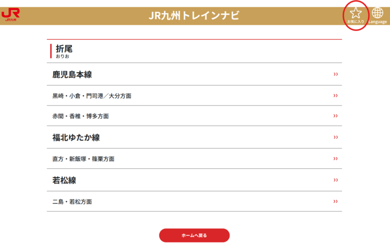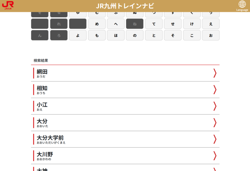 最初にも述べた点ですが、この「JR九州トレインナビ」は一方向に関する詳細な情報が得られるWEBサービスだと思ってください。