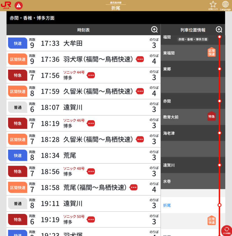 ちなみに、JR九州アプリの機能の1つである。「どれどれ」
